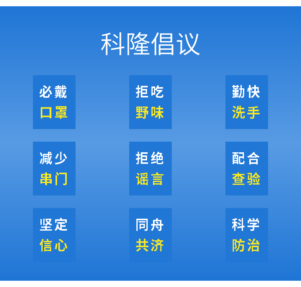 Cheng Di, general manager of Henan Kelong New Energy Co., Ltd., said: "Since the outbreak, we have always been concerned about the development of the epidemic, and want to take a responsibility for fighting the epidemic and contribute our own meager strength! At the same time, we will also implement relevant national requirements. , Fully cooperate with the epidemic prevention and control work, do a good job of disinfection and epidemic prevention and control propaganda in the company, pay close attention to the health of employees during the holiday, and contribute to the joint fight against the epidemic."
